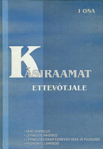https://raamatukoi.ee/käsiraamat-ettevõtjale_1999114641Käsiraamat ettevõtjale 1. osahttps://raamatukoi.ee/media/catalog/product/k/a/kasiraamat-ettevotjale_1999.png88EURInStock/Kõik teemad/majandus, äri/Kõik teemad/õigus303112125Kogumik püüab anda lugejale algteadmisi peamistest kõige sagedamini esinevatest äritehingutest. Kogumikus antakse lühidalt konkreetset tehingut selgitav teoreetiline osa, tuuakse ära nimetatud tehingut reguleeriv seadusandlus, lepingute näidised ning enam esinevad vead ja puudused lepingutes. <br />Kogumikus kasutatud lepingute näidised ei ole spetsiaalselt välja mõeldud nimetatud kogumiku jaoks: need on nii öelda töötavad lepingud, millede kohaselt on teostatud konkreetseid tehinguid. Arusaadavalt ei ole lepingutes ära toodud poolte nimetusi ja muid spetsiifilisi konkreetse tehingu andmeid, mis on igas lepingus erinevad.<ul> <li /> Seadusandlus<li /> Lepingute näidised<li /> Lepingutes enam esinevad vead ja puudused<li /> Riigikohtu lahendid </ul> Kogumik püüab anda lugejale algteadmisi peamistest kõige sagedamini esinevatest äritehingutest. Kogumikus antakse lühidalt konkreetset tehingut selgitav teoreetiline osa, tuuakse ära nimetatud tehingut reguleeriv seadusandlus, lepingute näidised ning enam esinevad vead ja puudused lepingutes. <br />Kogumikus kasutatud lepingute näidised ei ole spetsiaalselt välja mõeldud nimetatud kogumiku jaoks: need on nii öelda töötavad lepingud, millede kohaselt on teostatud konkreetseid tehinguid. Arusaadavalt ei ole lepingutes ära toodud poolte nimetusi ja muid spetsiifilisi konkreetse tehingu andmeid, mis on igas lepingus erinevad.<ul> <li /> Seadusandlus<li /> Lepingute näidised<li /> Lepingutes enam esinevad vead ja puudused<li /> Riigikohtu lahendid </ul>